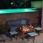 K apartmánu patří chladnička a kuchyňské nádobí. Hosté mohou také relaxovat u soukromého plaveckého bazénu.